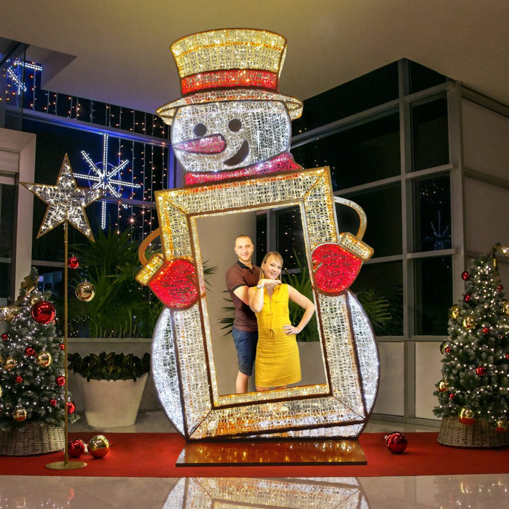 I’m a giant snowman. I’m also a photo frame perfect for taking a selfie. I’m original and friendly.  My name’s Hamilton!