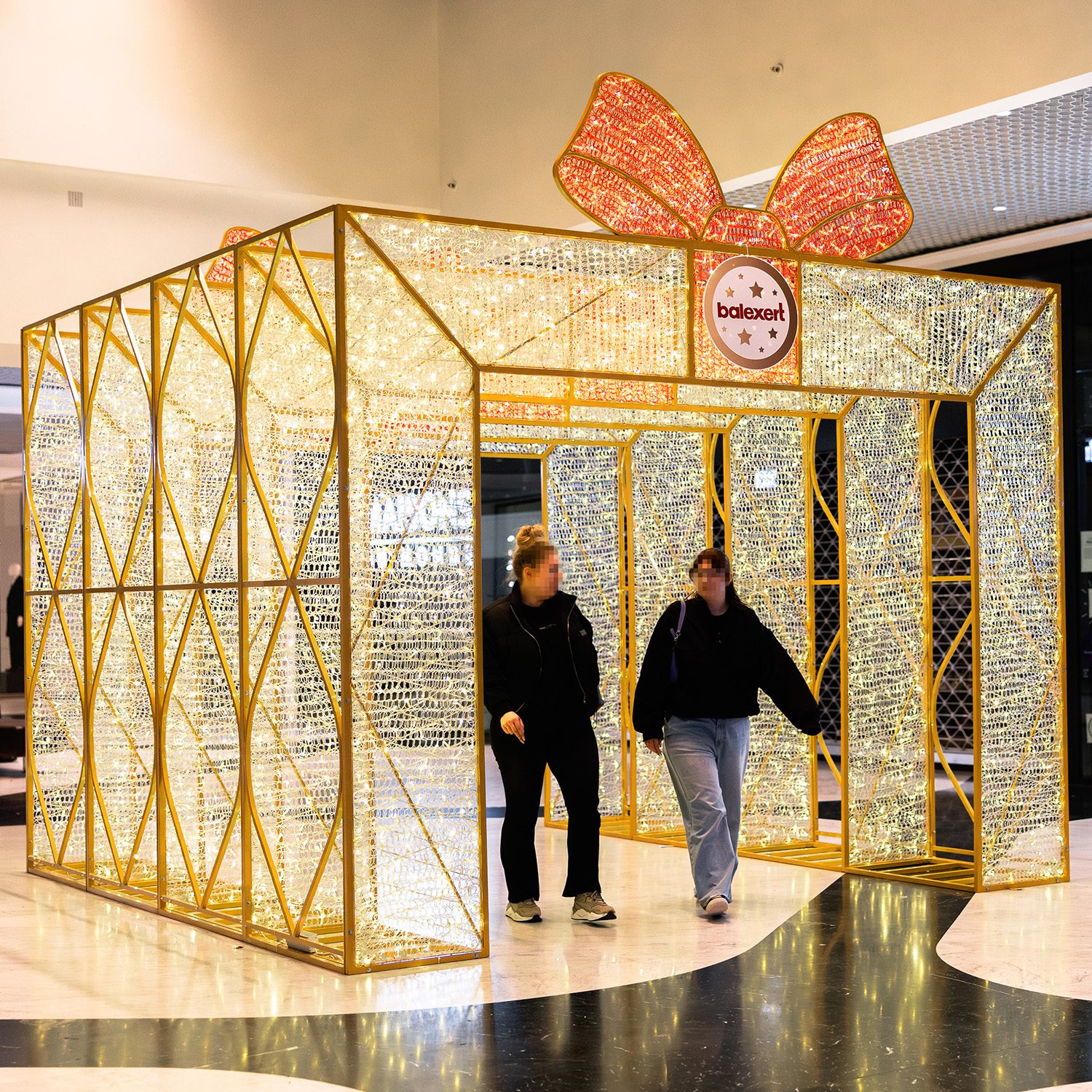 Entra en un regalo gigante con Andorra. Este túnel luminoso en forma de regalo atrae todas las miradas, tanto de pequeños como de mayores. Majestuoso y espectacular, encaja perfectamente en centros urbanos o centros comerciales.