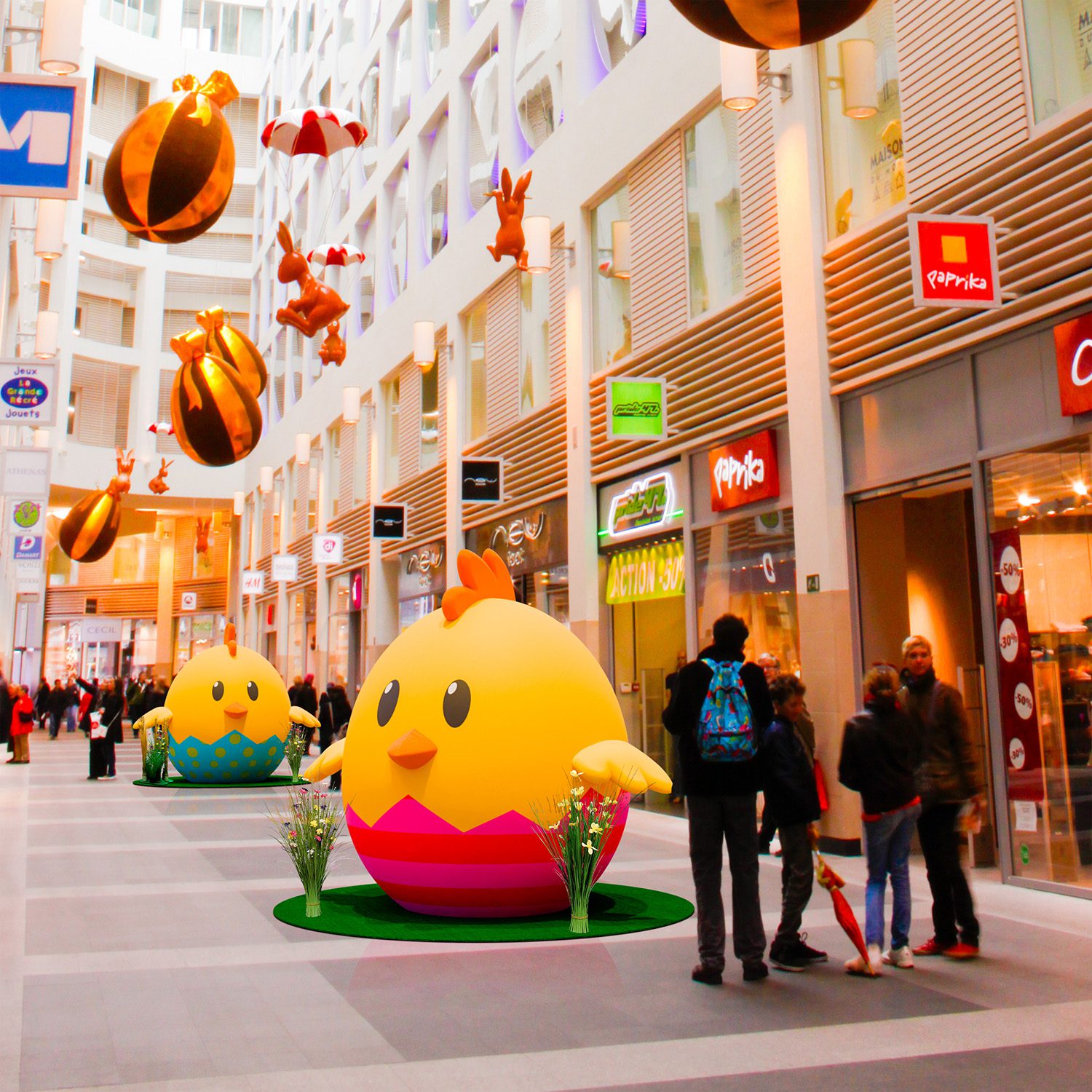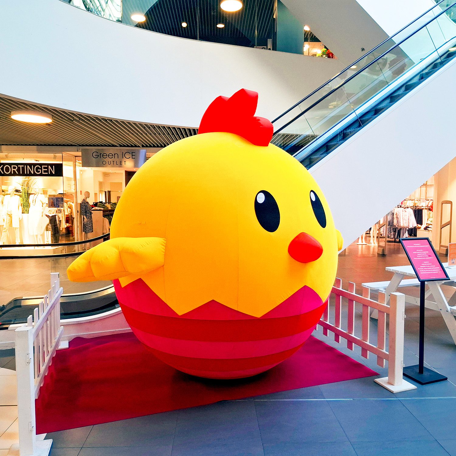 A todo el mundo le encanta Harlow, el pollito gigante. Es una decoración divertida y colorida que alegrará tu centro comercial. Con su adorable aspecto, seguro que encantará a pequeños y mayores.