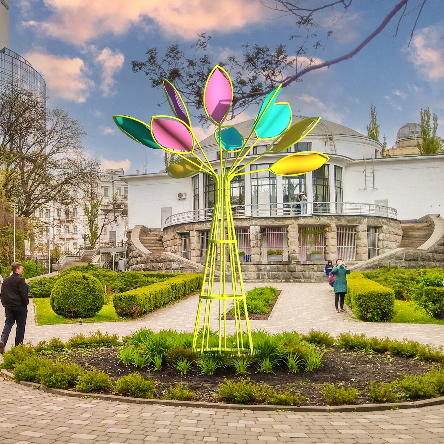 Perfect voor het zomerseizoen weet de Bellaria-boom te verleiden met zijn hedendaagse en zeer kleurrijke uitstraling. De bladeren draaien mee met de wind en creëren zo een levendige animatie die de aandacht van voorbijgangers trekt. Ideaal voor pleinen, rotondes en openbare ruimtes, brengt hij dynamiek en frisheid in de lente en de zomer.